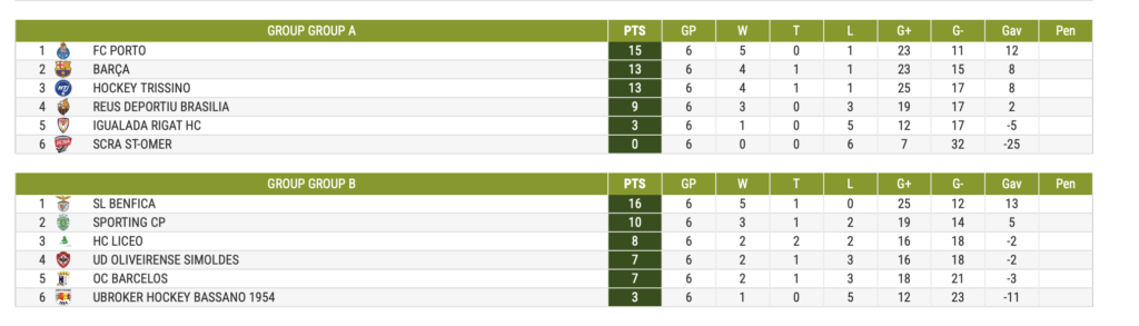 - FC Porto lidera con 15 puntos, seguido por Barça y Trissino con 13; Reus ocupa la cuarta plaza con 9. En el fondo, Igualada (3) y Saint-Omer (0) están obligados a puntuar si quieren reengancharse.
